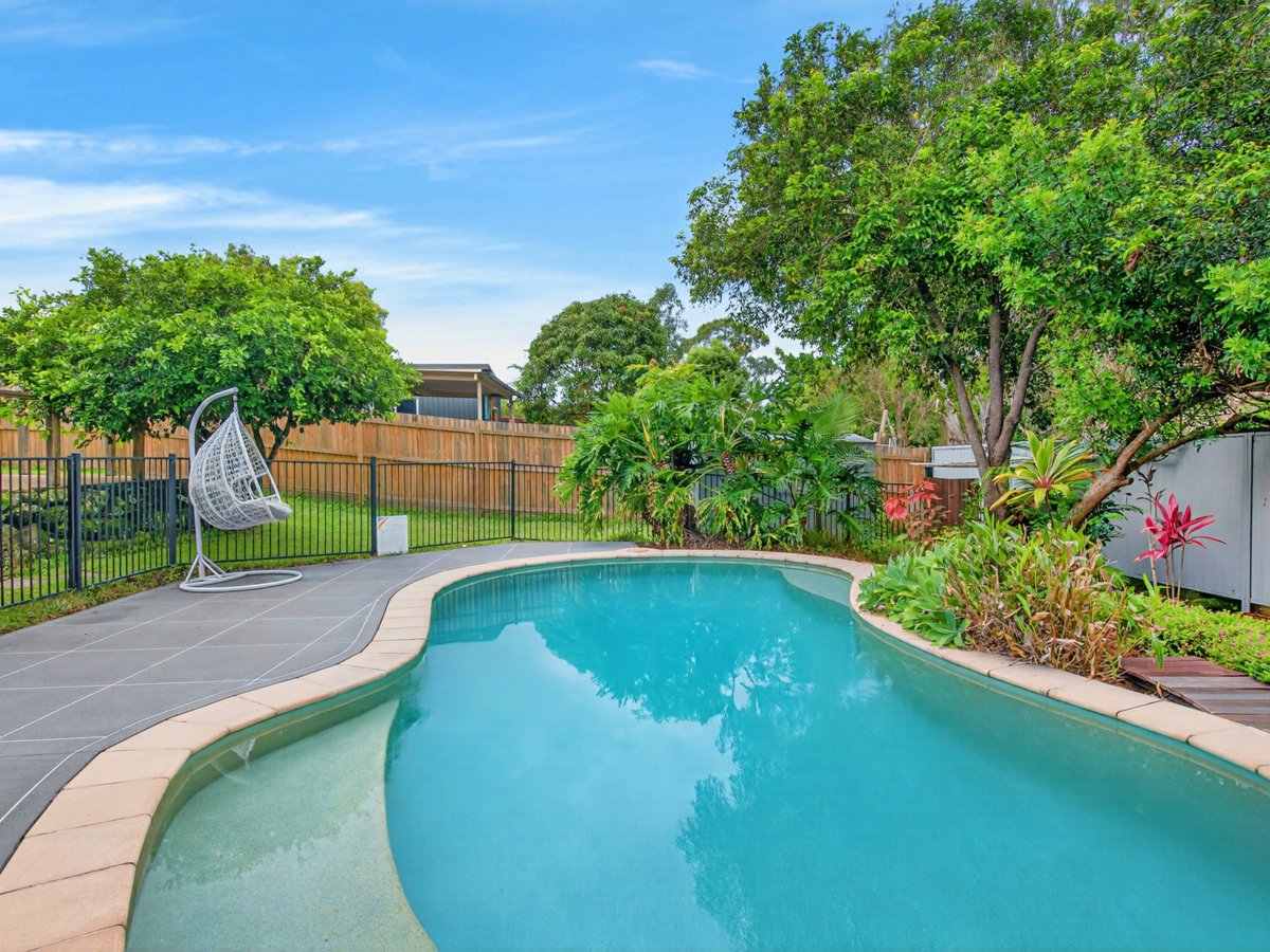 A huge 14m x 4m covered alfresco area sets the stage for year-round entertaining, overlooking a lush, landscaped yard and a stunning tropical in-ground pool — your own private oasis. With no rear neighbours and a peaceful reserve backdrop, the sense of space and serenity is undeniable.
