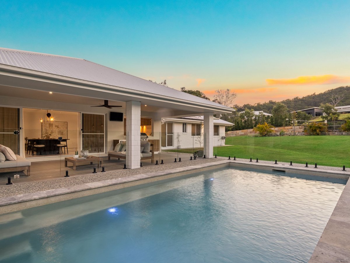 Showcasing quality craftsmanship, thoughtful design and a contemporary rural aesthetic, this remarkable acreage home offers extraordinary family living and stands as a true showpiece. Gracefully set upon a fully-fenced 4,106 square metre allotment with sweeping hinterland vistas, this commanding single-level residence fuses tranquillity and abundant space across multiple living domains, five beautifully appointed bedrooms, two indulgent bathrooms and an expansive outdoor entertaining oasis.