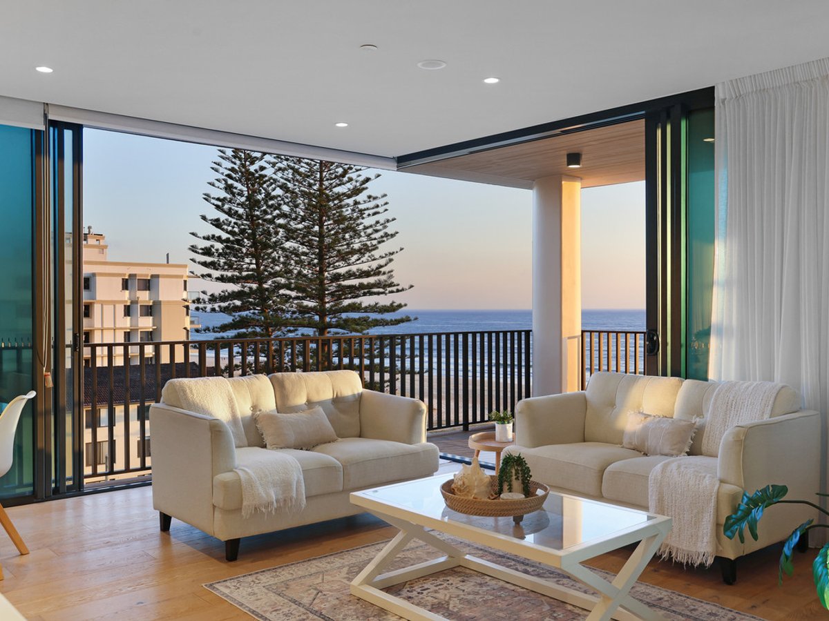 Positioned on the prized northeast corner, it captures a sweeping outlook that stretches from the ocean and Burleigh Headland to the hinterland and Coolangatta skyline. The panorama is best enjoyed from the oversized covered balcony, an inviting setting to relax or entertain while soaking up the vibrant energy of this premier beachside pocket.