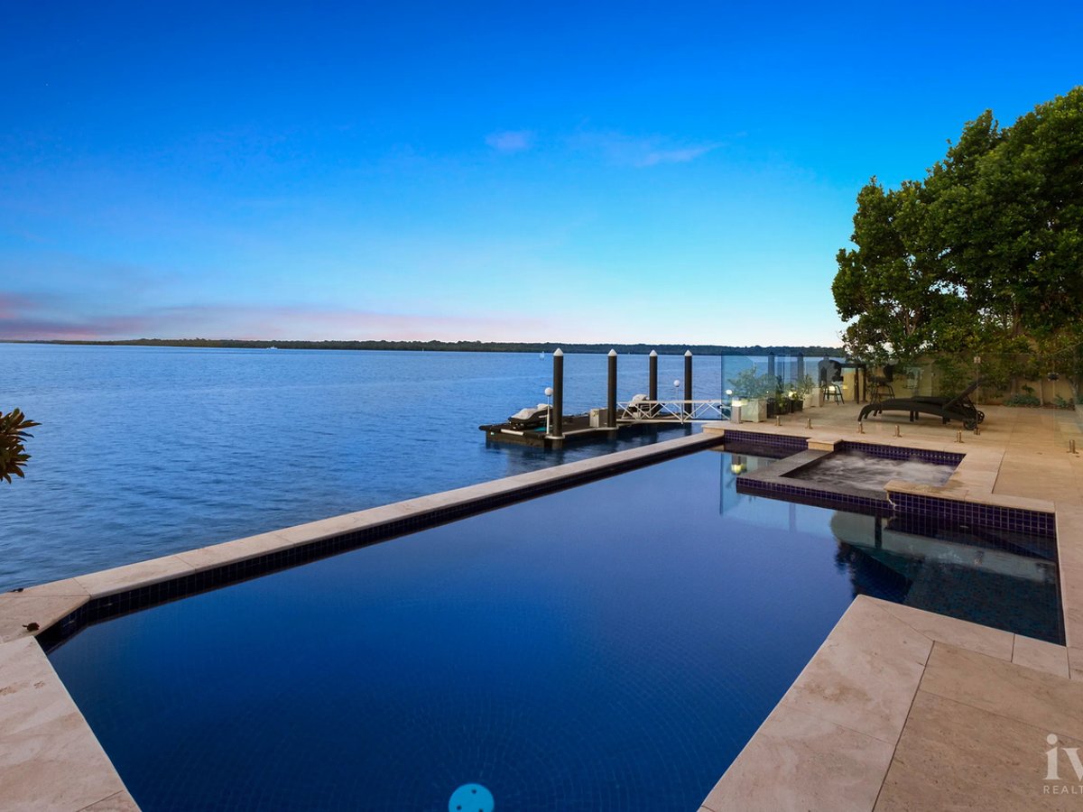 Positioned in one of the Broadwater's most tightly held and sought-after north-facing locations, this substantial waterfront residence offers exceptional scale, ceiling height and uninterrupted water views that can never be built out.