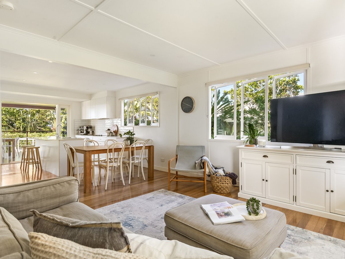 Features three generously sized light filled, air-conditioned bedrooms, the main with an ensuite and floor to ceiling wardrobes. The bedrooms are located down a separate wing of the home. Its spacious open plan living area with large windows to the front and glass french doors to the rear deck allows for cross flow ventilation and light to filter through. Offer a flowing, functional design with connection inside and out, allowing for both relaxed family time and private retreats.